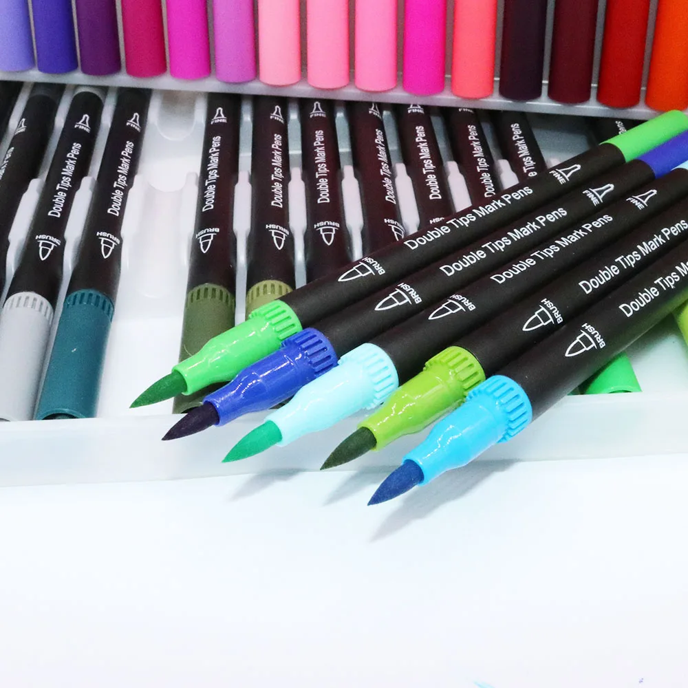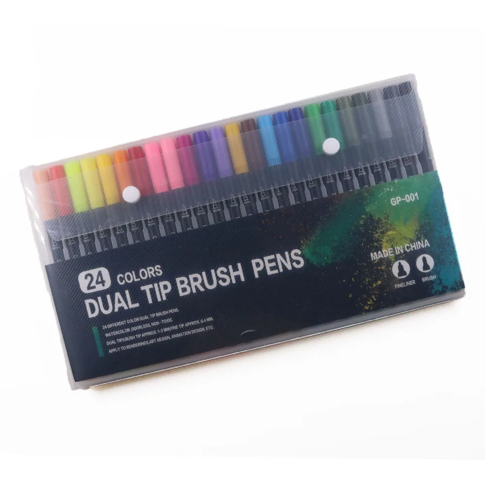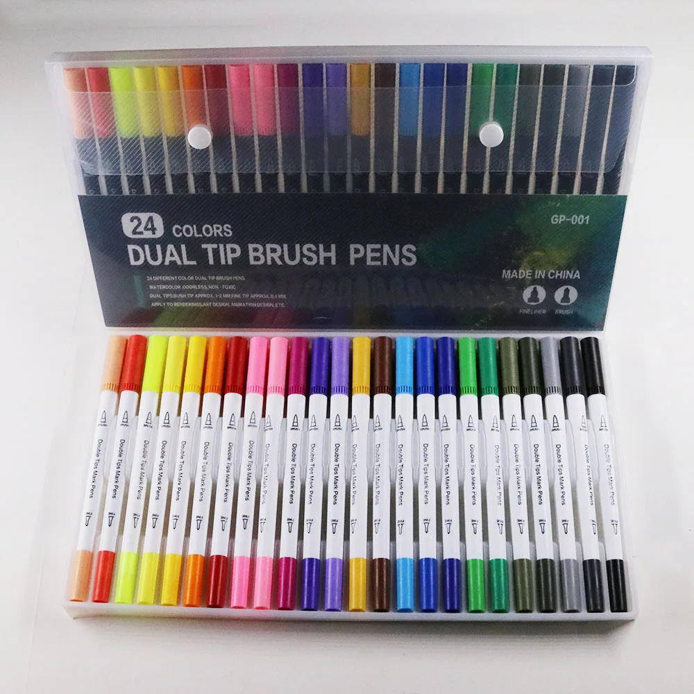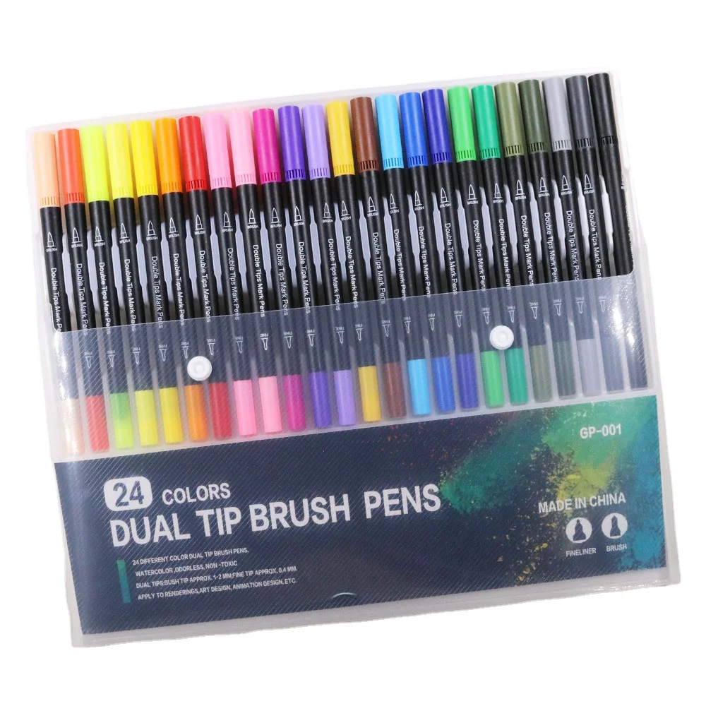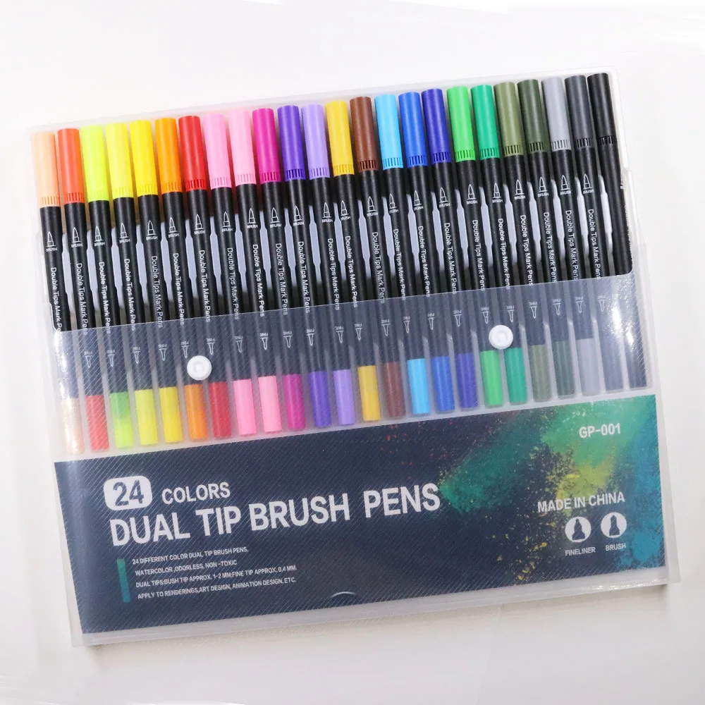 24 Color Wholesale Professional Drawing Dual Tip Art Marker 24 Watercolor Brush Pen Set